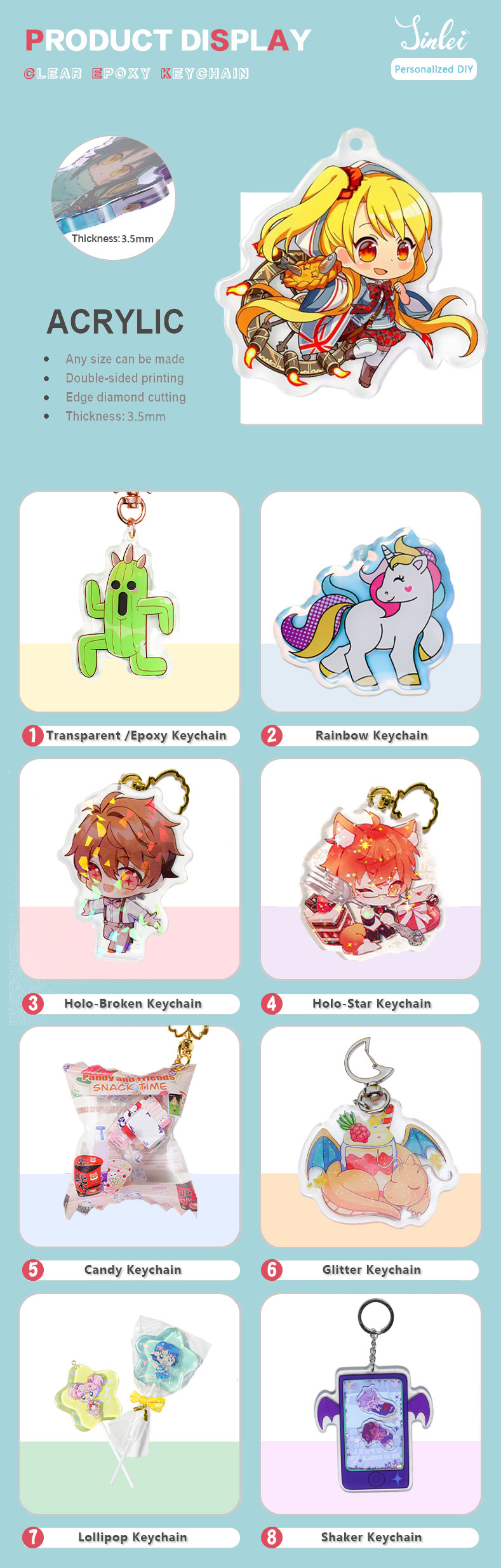 Holographic Acrylic Charm Acrylic Customized Printing