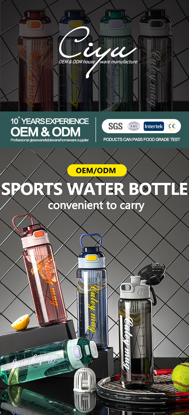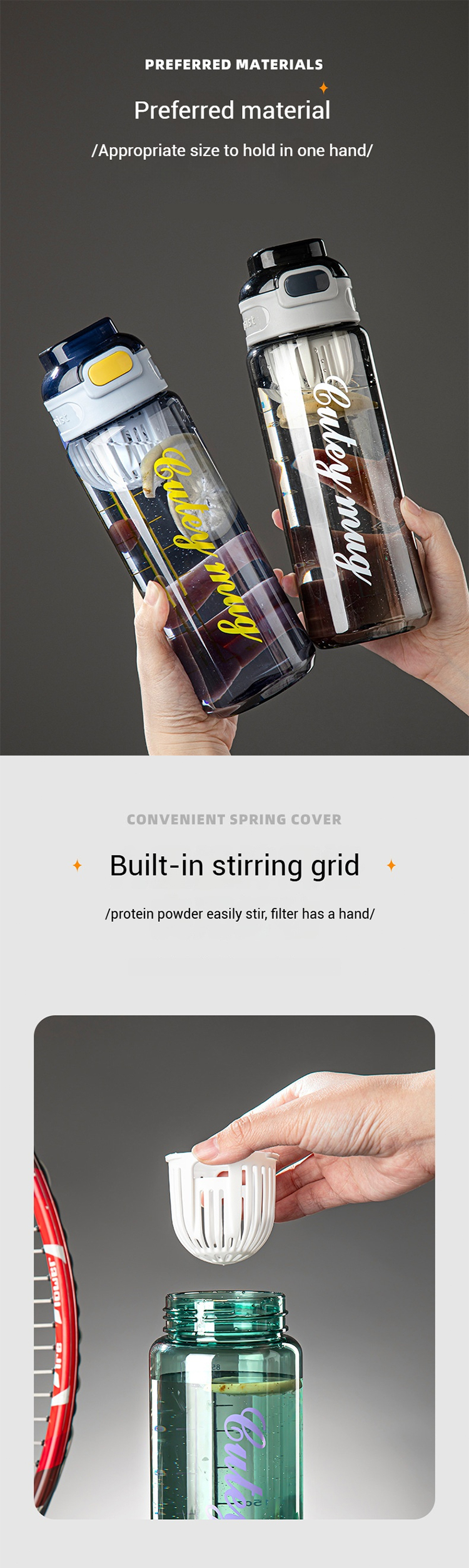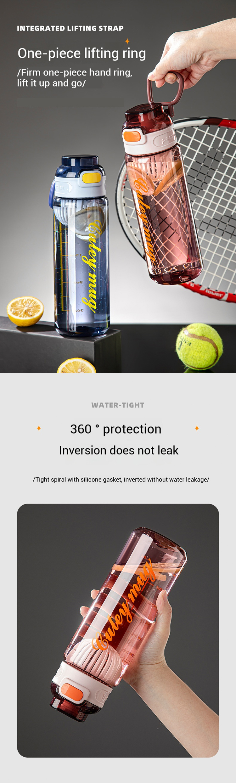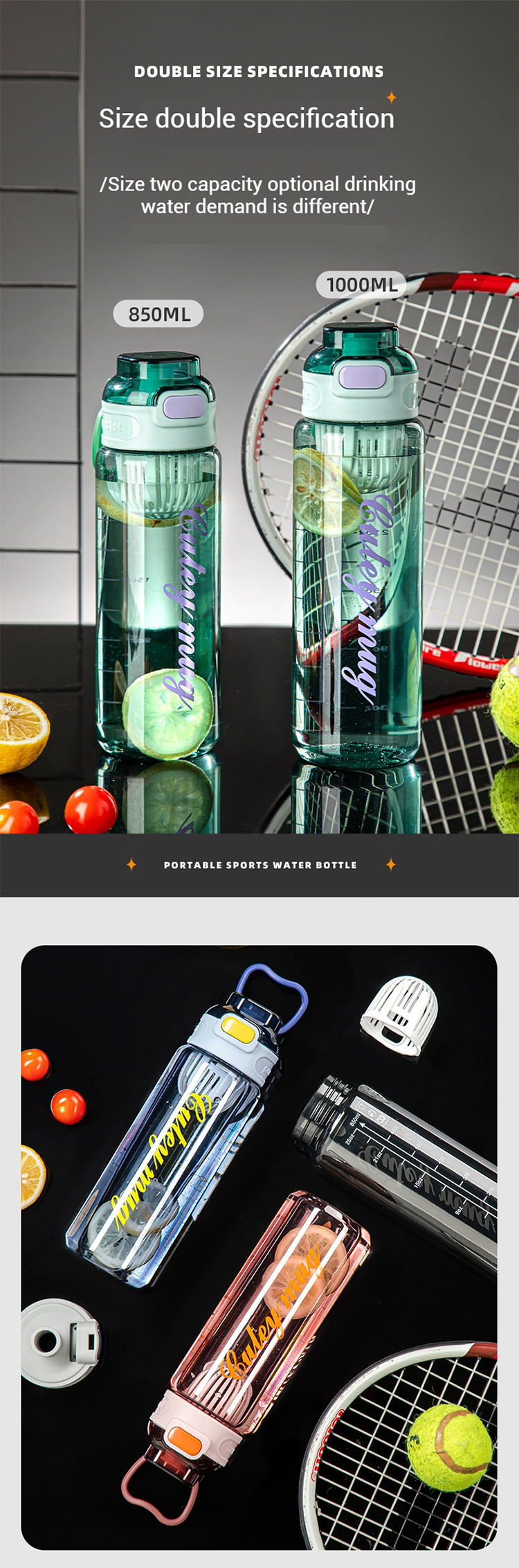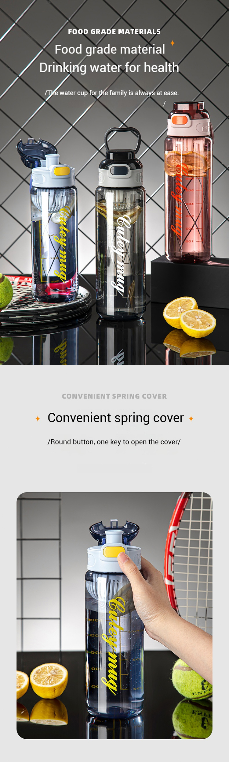 800ml 1000ml Pc Drinking Water Bottles (Opening Button)